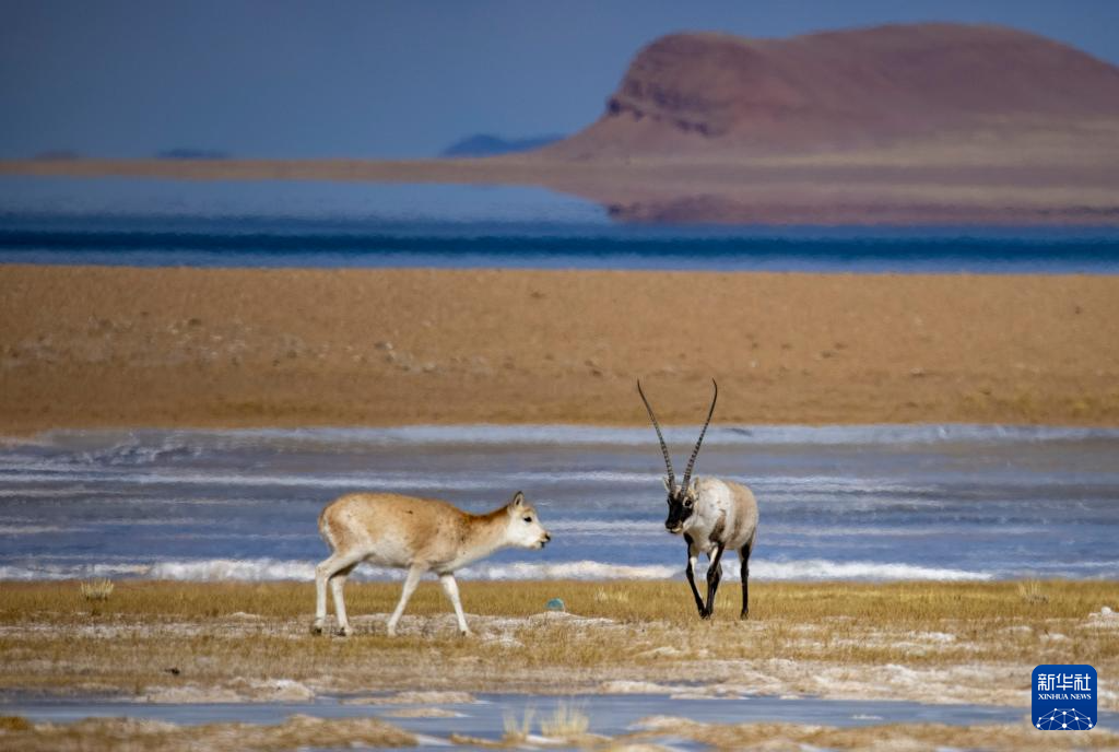 这是在色林错湖畔拍摄到的藏羚羊(1月5日摄)。 新华社记者 姜帆 摄