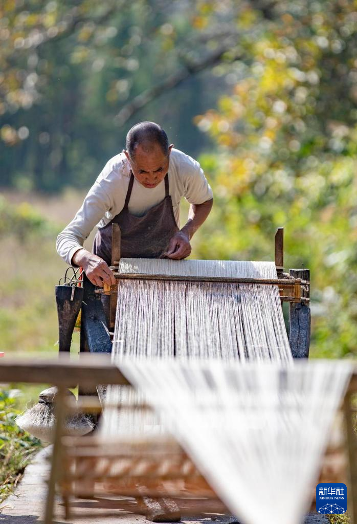 江西省新余市农民使用传统工艺加工制作夏布(资料图片)。新华社发(赵春亮 摄)