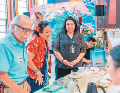 外国观众在活动现场欣赏茶艺表演。