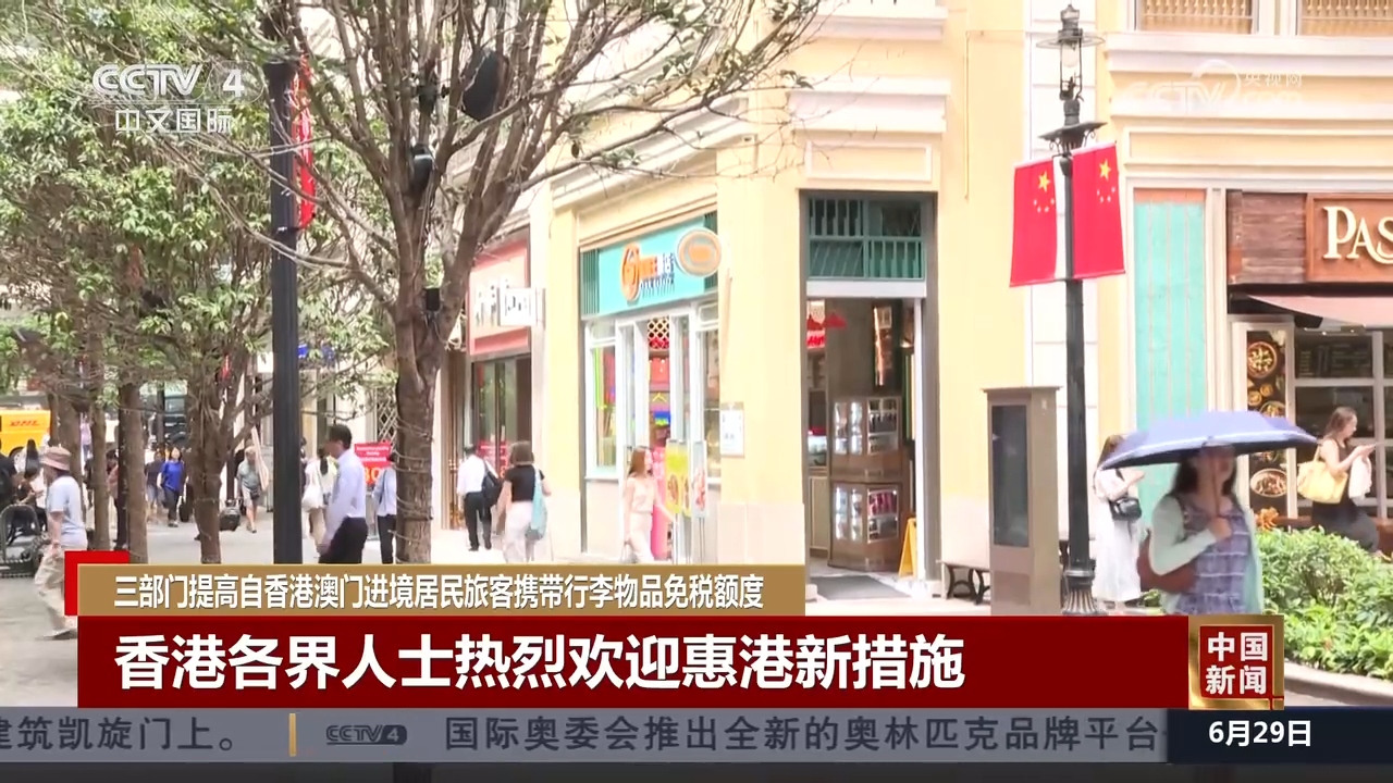 对于三部门提高自香港澳门进境居民旅客携带行李物品免税额度一事,澳门特区政府和各界人士表示,中央再次出台的惠澳措施将带动旅游消费增长,并惠及更多中小企业,为澳门特区经济发展注入新动力。