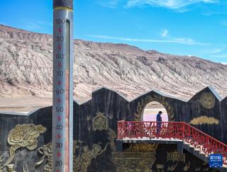 这是6月29日拍摄的火焰山景区的巨型温度计,当日该温度计所示地表温度超过70摄氏度。
