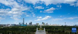 在蓝天白云的映衬下,阿斯塔纳颇具特色的建筑群勾勒出美丽的天际线。