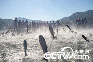 杭州千岛湖“巨网捕鱼” 一网收获6万斤鲢鳙鱼