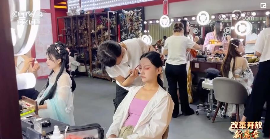 下午四时,一天的暑热退去,洛邑古城周边上千家服饰店也迎来一天中最忙的时候,不少店铺里,等待妆造的顾客甚至排起了队。