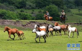 盛夏时节,位于甘肃省天水市清水县秦亭镇的秦非子牧场迎来了碧草繁花、天高地阔的最美时节。新华网发(周文涛 摄)