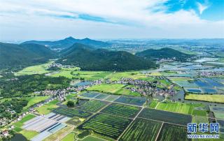 7月8日,航拍安徽省马鞍山市当涂县护河镇青山村,稻田、沟渠、蟹塘及民居等构成一幅和美的乡村画卷。
