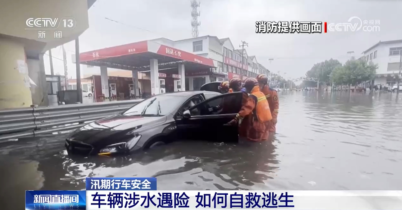 央视网消息:汛期行车如遇到积水路段,车主该如何确保行车安全?一旦遇险,又该如何自救呢?一起来看消防的安全演示。