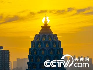 7月16日,江苏常州,宝林禅寺沐浴在初升太阳的光芒中,古朴的寺庙被镀上了一层金色的光辉,宁静而庄严。