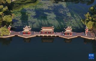 7月20日,游客在承德避暑山庄景区游览(无人机照片)。
