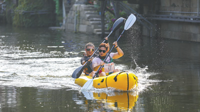 户外运动爱好者在浙江湖州市南浔古镇景区参加桨板公开赛。邹 黎摄(人民视觉)